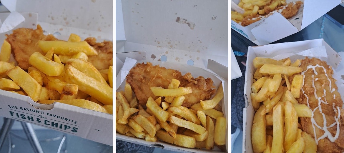 We had wonderful fish, burgers, whitebait and a great helping of chips. All cooked to perfection and for a small fee delivered to Calshot beach for my wife's birthday. Thank you - we'll come back again.
